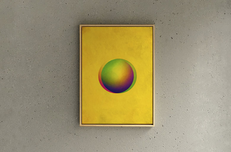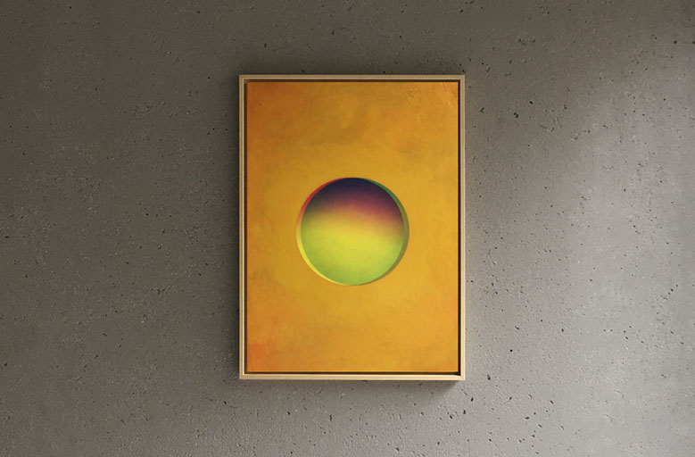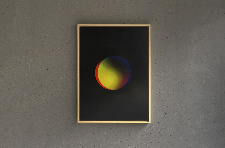 "Zero-gravity in space enables the spinning and levitation of colossal planetary objects, adeptly depicted by the author using the anaglyph technique. Entitled GTO 1, GTJ 2, GTY 3, GTB 4, GTV 5, GTS 6 and GTG 7, a series of seven canvases shows seven spheres, whose number is a direct reference to the number of planets that have so far been found orbiting a dwarf star in the TRAPPIST-1 planetary system.