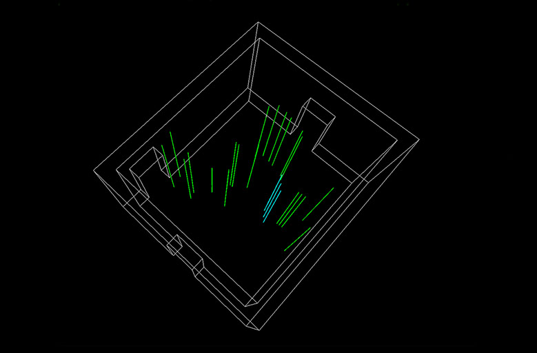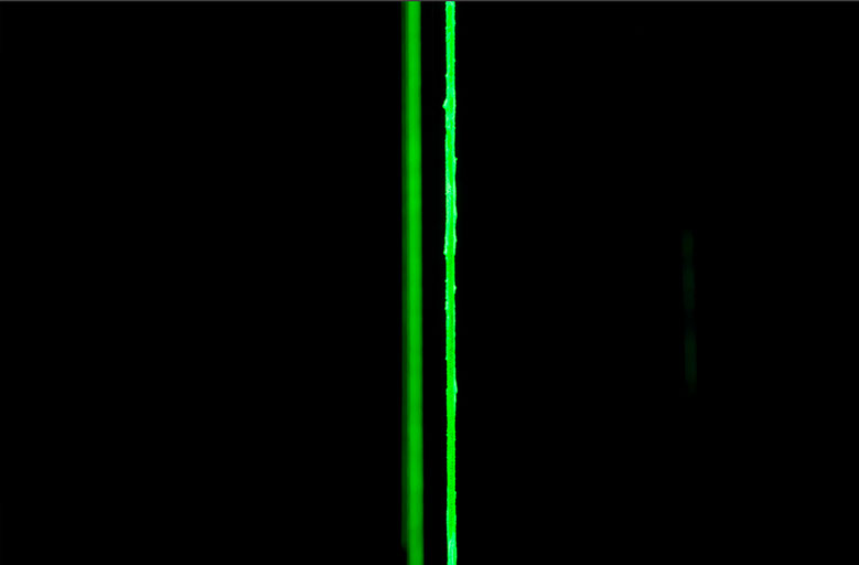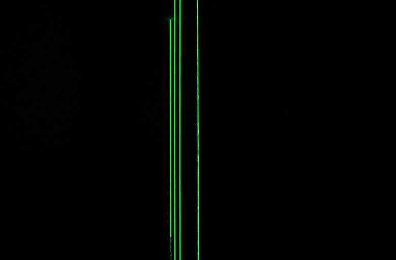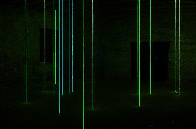 In addition to the visual recollection of two-dimensional lines this installation incorporates gallery space and illumination light giving the artwork a tangible and physical feel. In the same way that the universe needed nothingness to come into being, lines cannot exist without space.